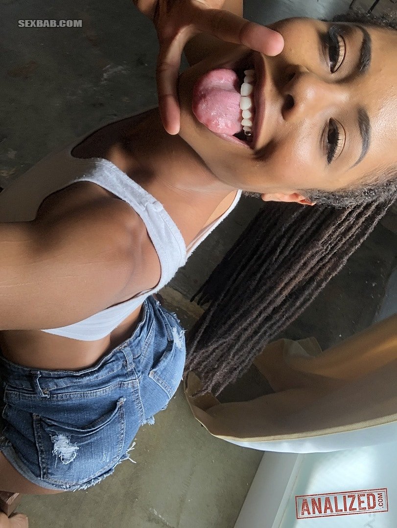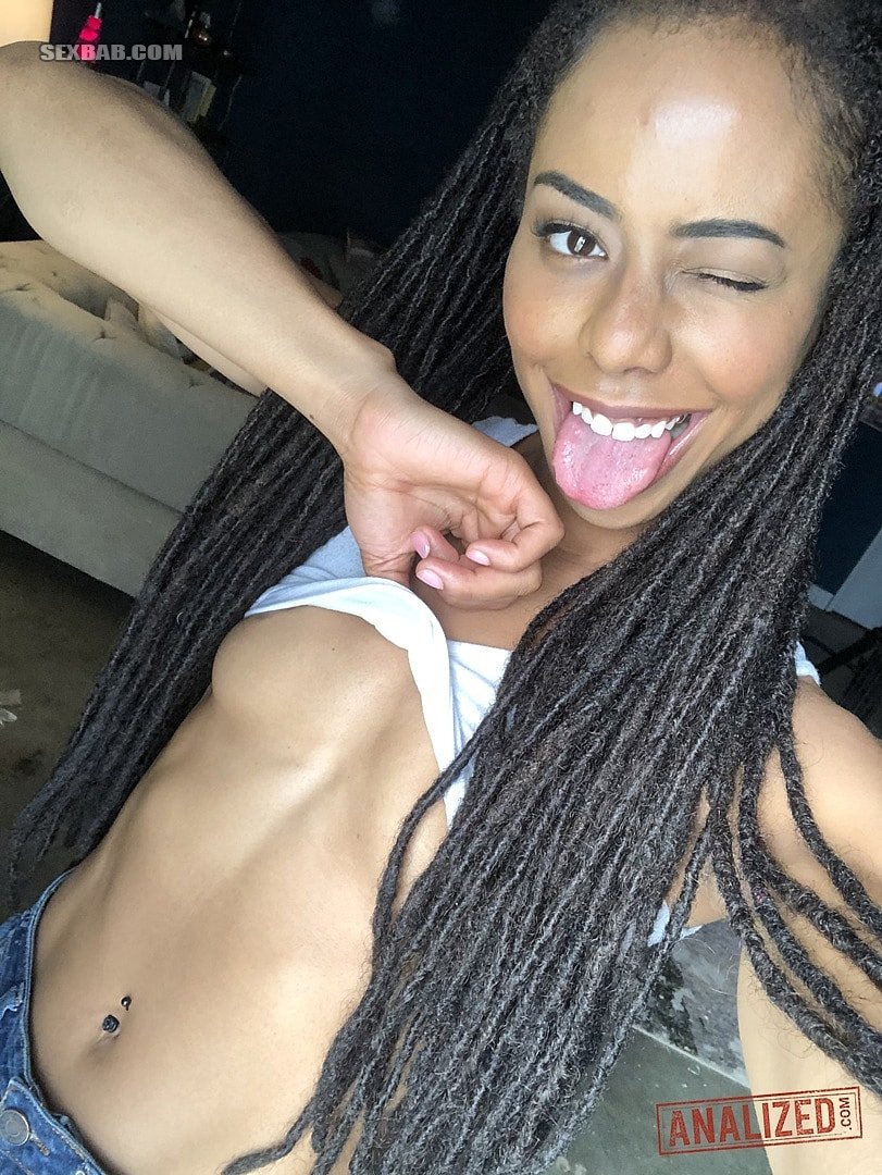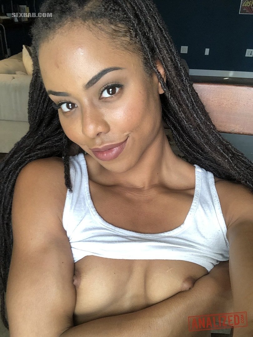 Красивая негритянка Кира Ноир показывает свою горячую задницу и небольшие сиськи в соло (17 фото)