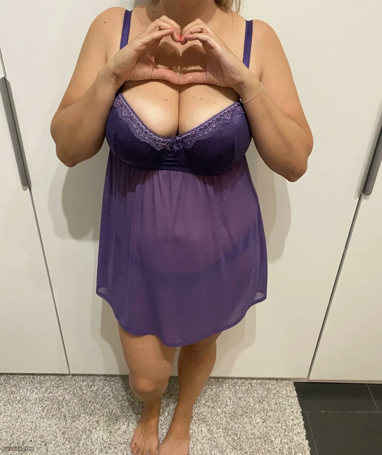 Сексуальная взрослая женщина в прозрачном пеньюаре вывалила свои дойки (5 фото)