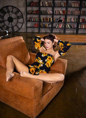 Описание: Эротично стянув с себя короткое платье и выставив на показ выдающиеся прелести, горячая дамочка с красивой подтянутой фигурой развратно позирует обнаженной в кресле, страстно извиваясь всем телом и с разных ракурсов засвечивая между ног свою бритую сочную письку с волосатым лобком.