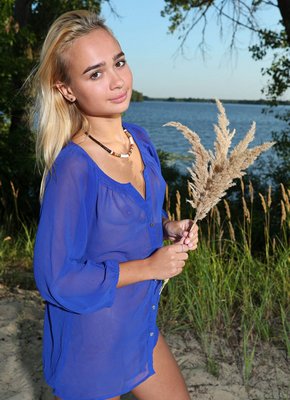 Описание: Соблазнительно медленно скинув с себя прозрачную блузку без нижнего белья, кокетливая молодая девица с миниатюрными титечками оголила перед камерой стройное молодое тело и принялась развратно позировать на природе, с разных необыкновенных ракурсов демонстрируя нам свою бритую розовую киску.