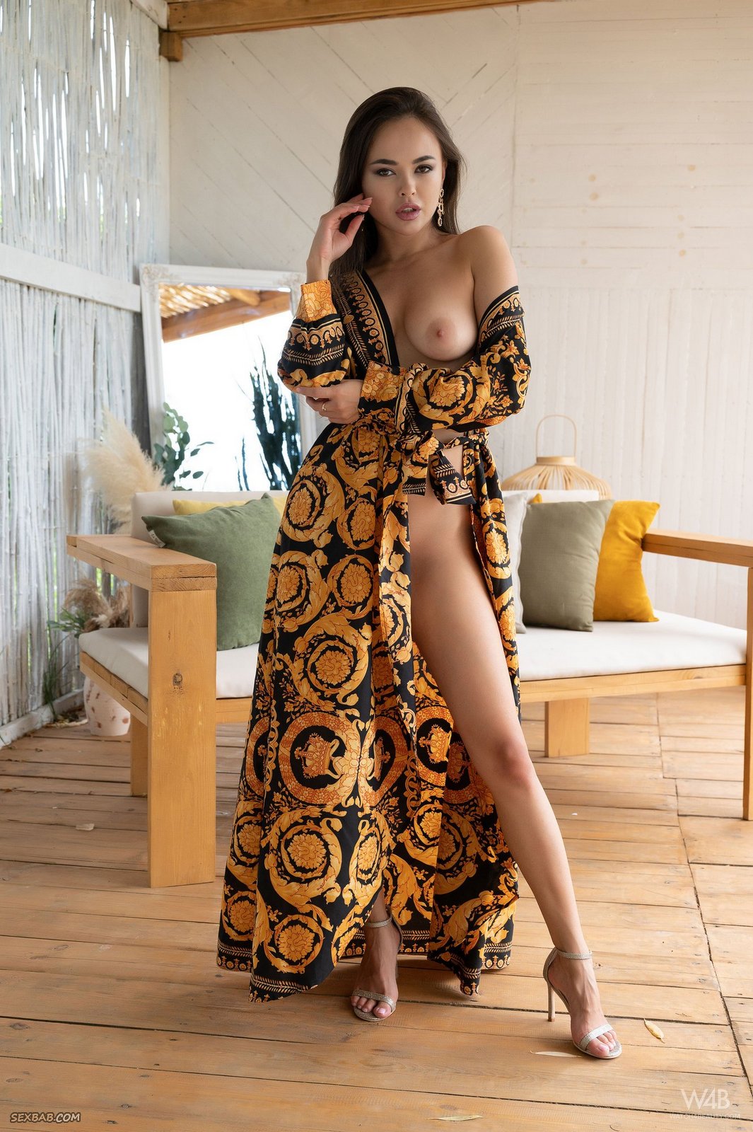 Описание: Легко распахнув на себе длинный халат, шикарная телка с сексуальным обнаженным телом охотно показала на камеру свою бритую темную пизду с сочными половыми губками. Страстно извиваясь в разных возбуждающих позах, голая брюнетка с натуральными упругими сиськами нетерпеливо подмахивает своими стройными бедрами и похотливо выпячивает крупным планом задницу с раскрытыми жадными дырками в промежности.