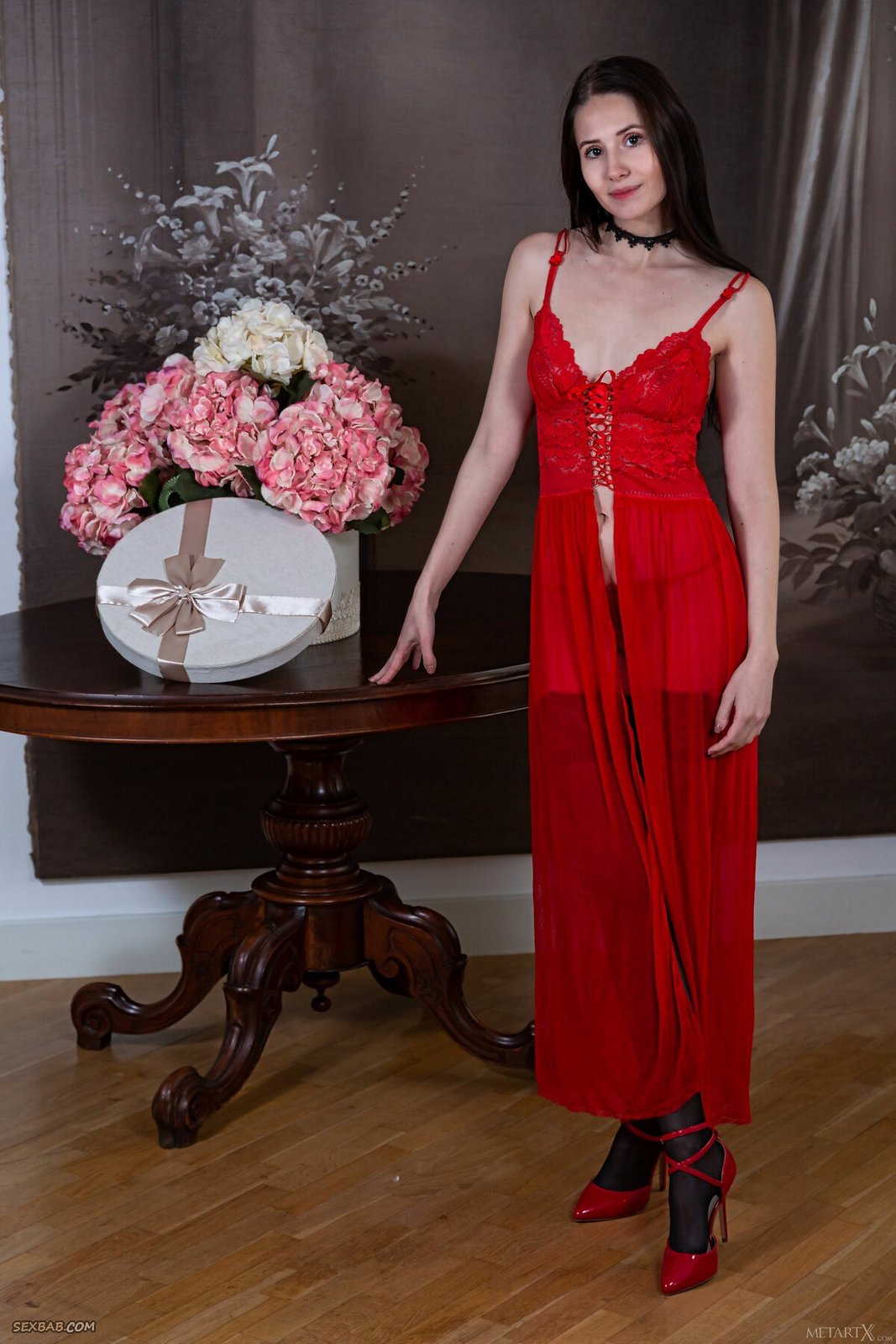 Описание: Страстно сорвав с себя красный откровенный наряд, развратная брюнетка в эротичных черных чулках возбуждающе мастурбирует свою бритую сочную пизду с подстриженным волосатым лобком, нежно лаская розовые половые губки и глубоко засовывая пальчики в узкую влажную щелку.