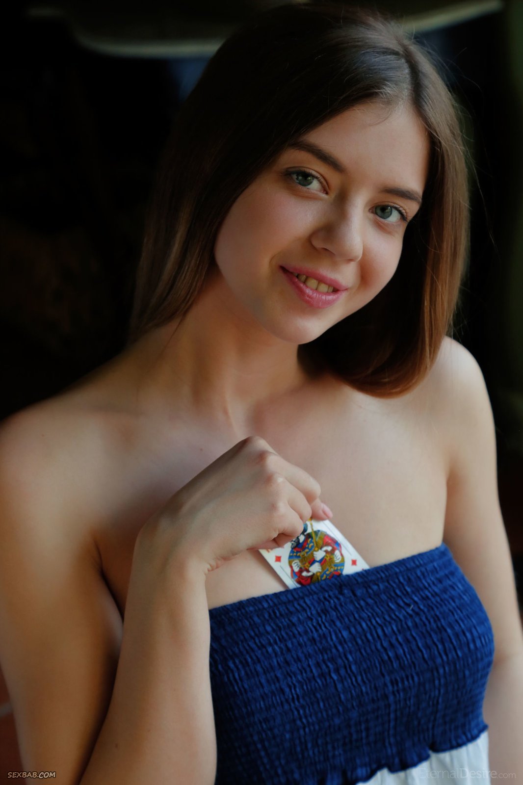 Описание: Обаятельная молодая девушка в коротком платье, устроившись на раскладном кресле, страстно позирует там и параллельно нежно ласкает себя руками. Получая от прикосновений к натуральным упругим сиськами и гладко выбритой письке массу удовольствия и приятных чувств, сексуальная модель закрывает глаза, фантазируя о брутальном мачо.