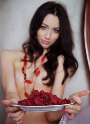 Описание: Эротично поедая сладкие сочные ягоды, голая красотка с маленькими аккуратными титьками позирует перед камерой в одних лишь милых чулках. Чувственно изгибаясь всем телом в разных откровенных позах, сексуальная брюнетка залезла на стол и крупным планом показала нам свою бритую промежность розовой сладкой киской.