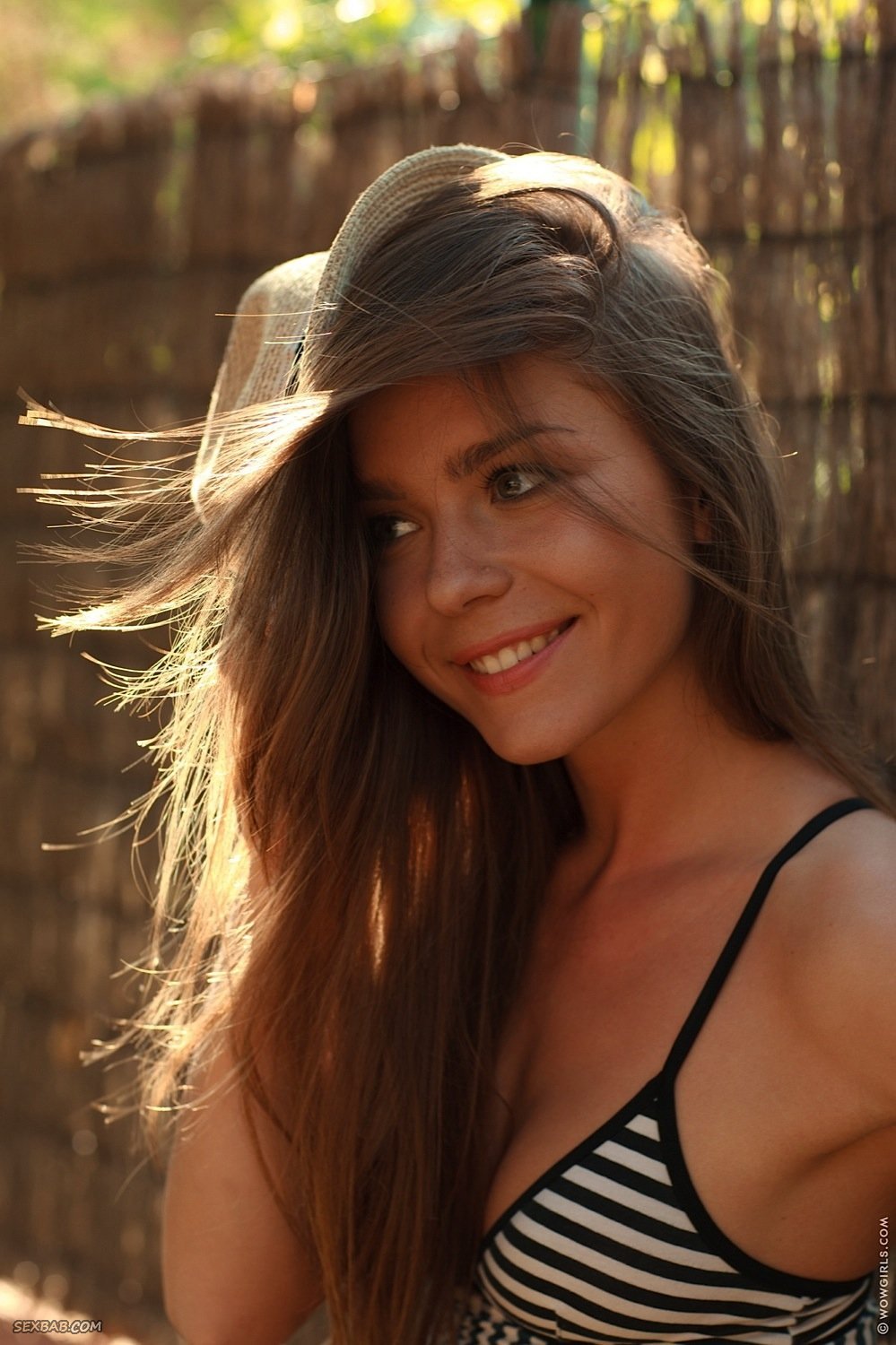 Описание: Улыбаясь и строя глазки нам через объектив камеры, обаятельная девушка со стройной талией с радостью меняет разные ракурсы и медленно снимает с себя цельный купальник. Обнаженной сексуальная стройняшка крупным планом демонстрирует маленькие сиськи с торчащими сосочками и бритую письку с прической на лобке.