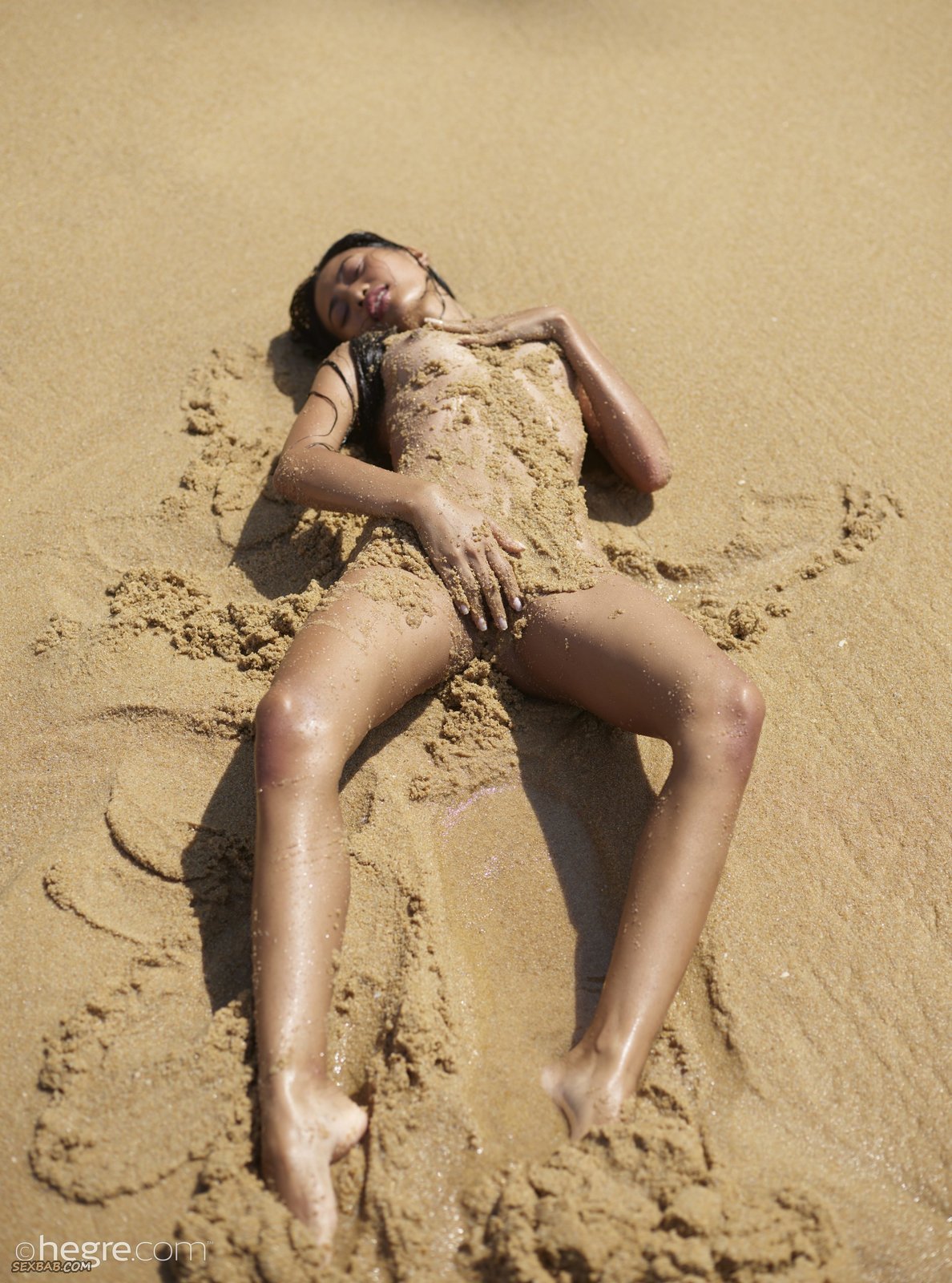 Описание: Не долго думая она согласилась на откровенную съёмку на пляже, и вот сексуальная, абсолютно голая тайка красуется перед камерой в песке, измазываясь с ног до головы, и испытывает от этого подлинное удовольствие. В процессе стройная азиатка с плоскими сиськами и торчащими сосочками засвечивала попку и бритую письку, порой забираясь в воду.