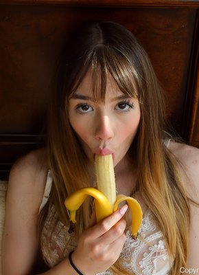 Похотливая нимфоманка засунула банан в письку