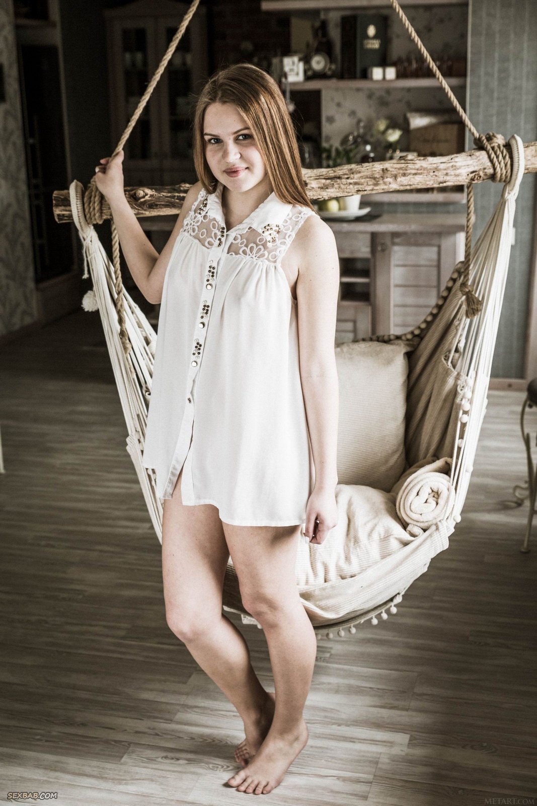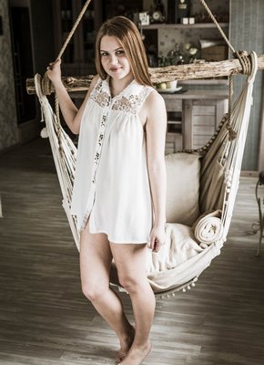 Описание: Молодая пышная шатенка с большой жирной жопой разделась до гола перед камерой и принялась развратно трясти своими выдающимися прелестями. Аппетитная девица с натуральными сиськами соблазнительно позирует на висячем гамаке и с раздвинутыми ногами вовсю демонстрирует всем свою бритую письку.