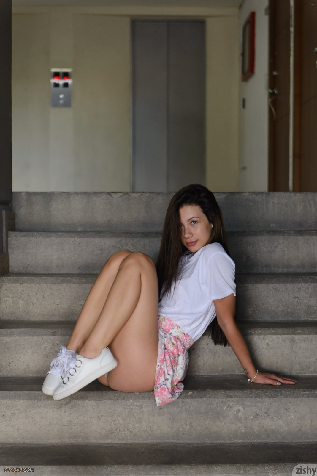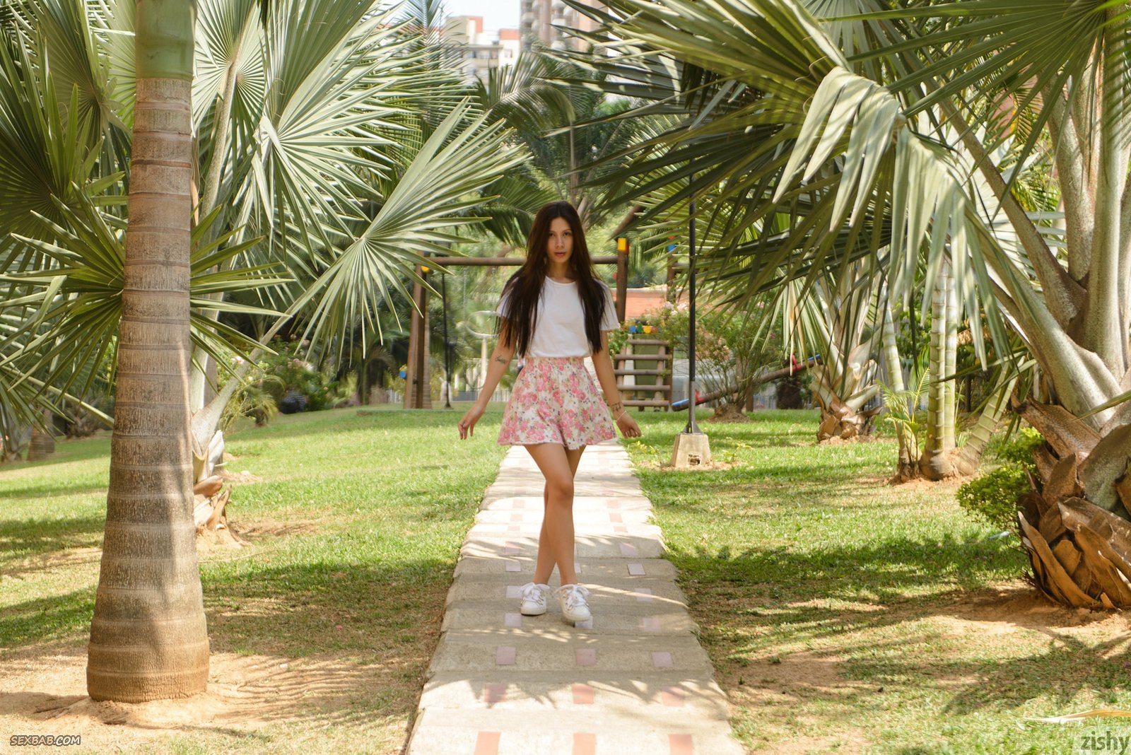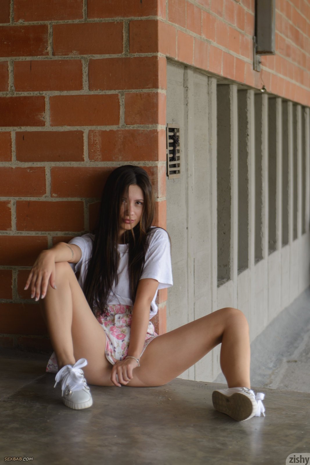 Описание: Обворожительная молодая девушка со стройной фигуркой и пухлыми губками гуляет на улице в короткой юбке и футболке, кокетливо позируя при этом перед фотографом с камерой. Страстно желая понравится нам с вами, сексуальная красавица позволяла взглянуть на её белые кружевные трусики под юбкой, для этого присаживаясь и раздвигая промежность.