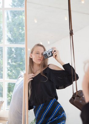 Описание: Получив увлекательное предложение сняться в эротической фото сессии, эта красавица не долго думала. И вот, эта очаровательная особа оказалась в импровизированной спальне, где она сняла трусики и совершенно голая забавляется со своей бритой киской, лаская и проникая в неё пальчиками. Девушка уверенно ведёт себя перед фотографом и несмотря на лёгкое смущение в её взгляде, охотно принимает самые откровенные позы.