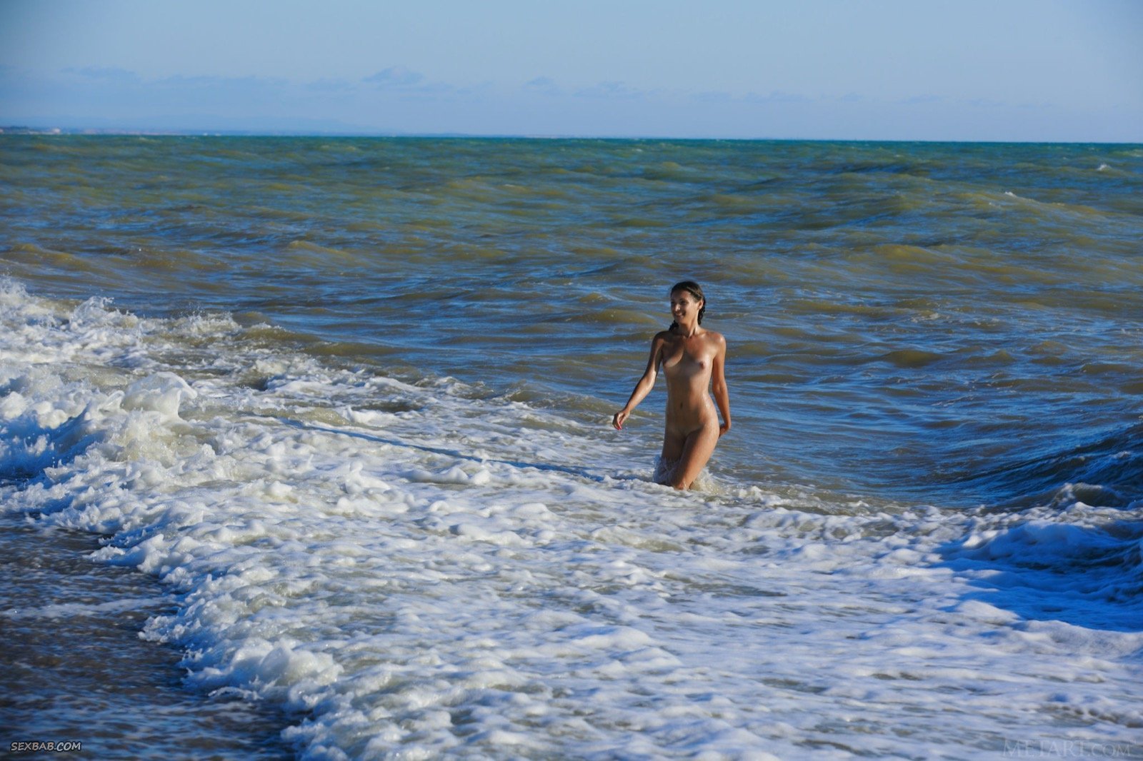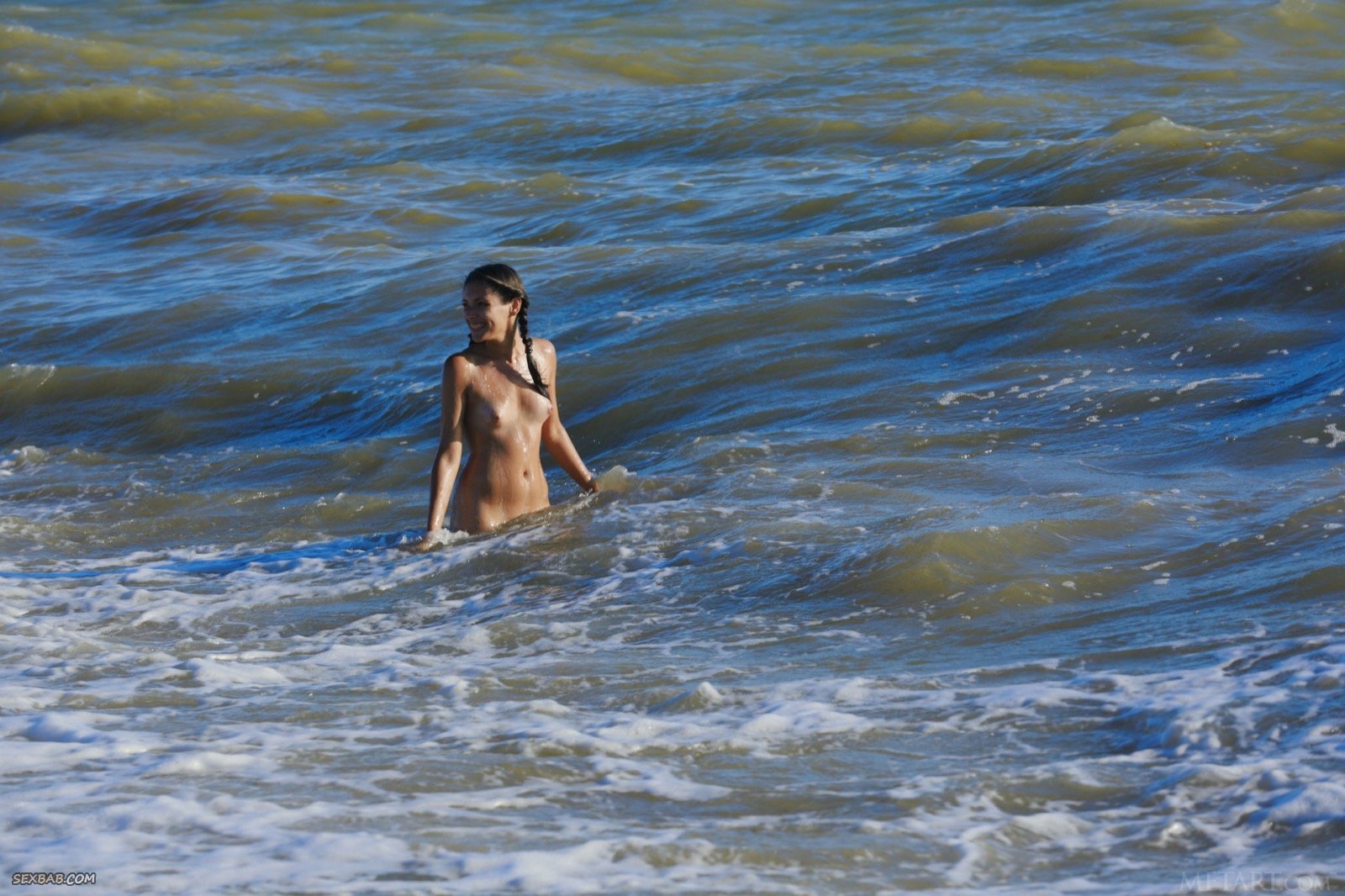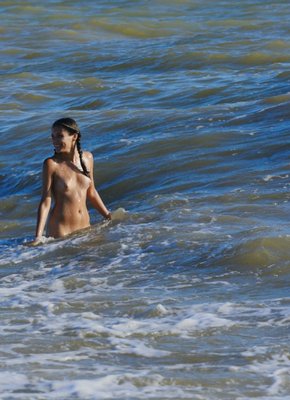 Описание: Оказавшись на пляже, молодая привлекательная девушка с косичками медленно снимает купальник и начинает эротично позировать, прогуливаясь по берегу и даже забираясь в воду по пояс. Таким образом сексуальная красотка смогла продемонстрировать маленькие сиськи с бритой писькой и мокрую попу.