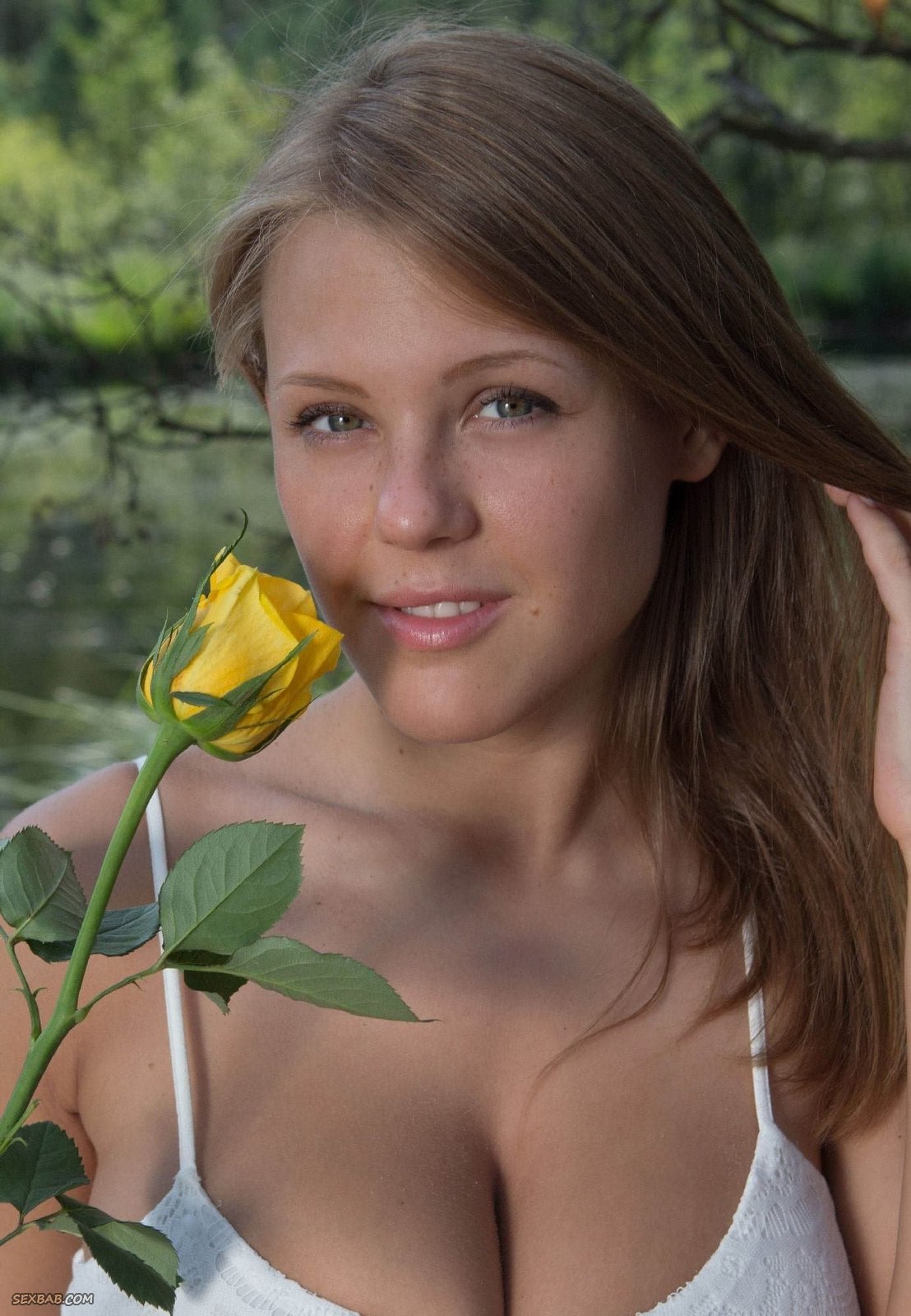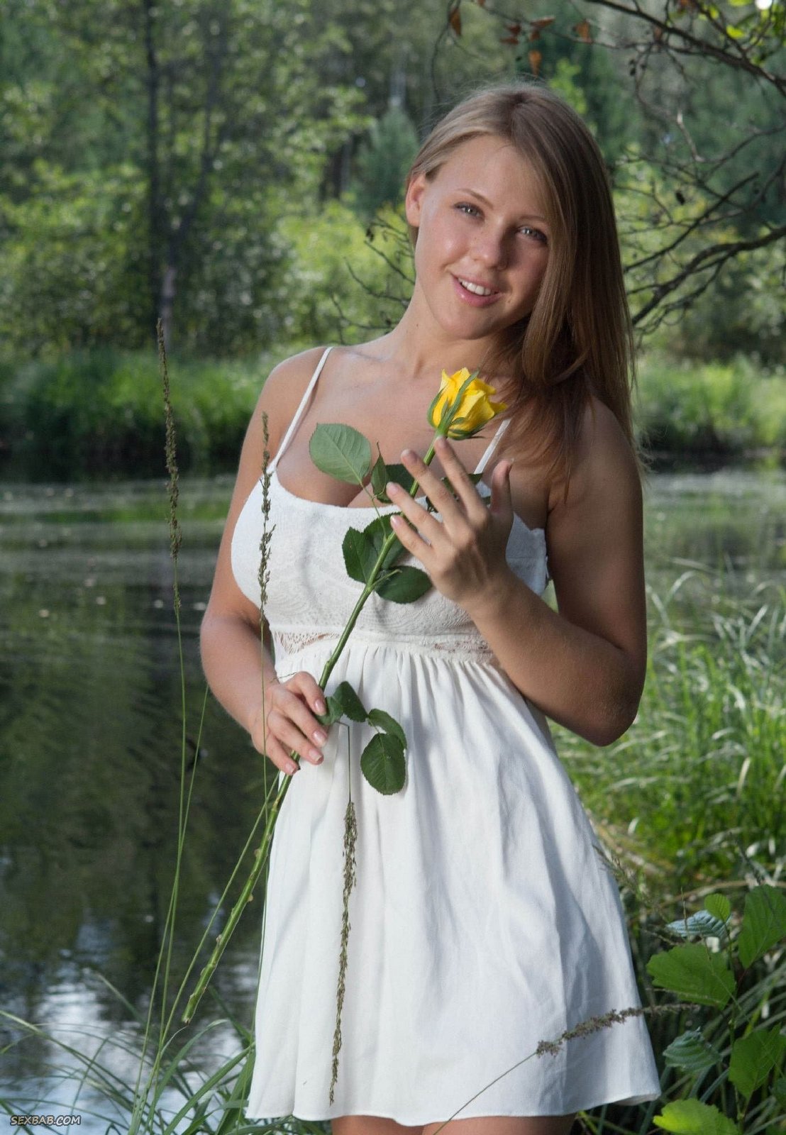 Деревенская девка с большими сиськами на озере