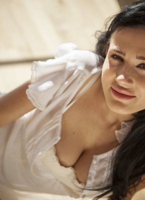 Описание: Позируя перед камерой, жаркая брюнетка располагается на полу и грациозно выгибаясь раком медленно стягивает кружевные белые трусики, после этого она поворачивается к фотографу попкой и садится на огромный искусственный член чёрного цвета которой очень плотно погружается в её мокрое влагалище. Наслаждаясь большим дилдо внутри себя девушка так же демонстрировала натуральные сиськи.