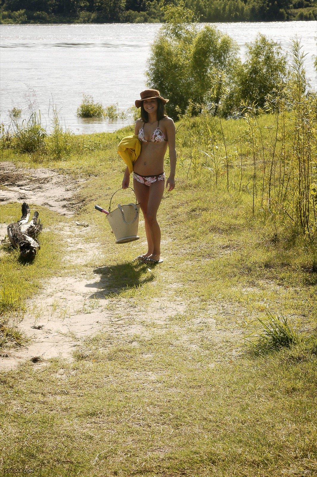 Описание: Оказавшись на берегу деревенской речки, молодая красавица со стройной фигурой и торчащими натуральными сиськами с привлекательными сосочками, скинув трусики и лифчик, голая принимается показывать сексуальное тело, в будущем забираясь в воду. Улыбаясь, в процессе съёмки очаровательная крошка так же не забывала сделать акцент в кадре на своей попке и бритой письке.