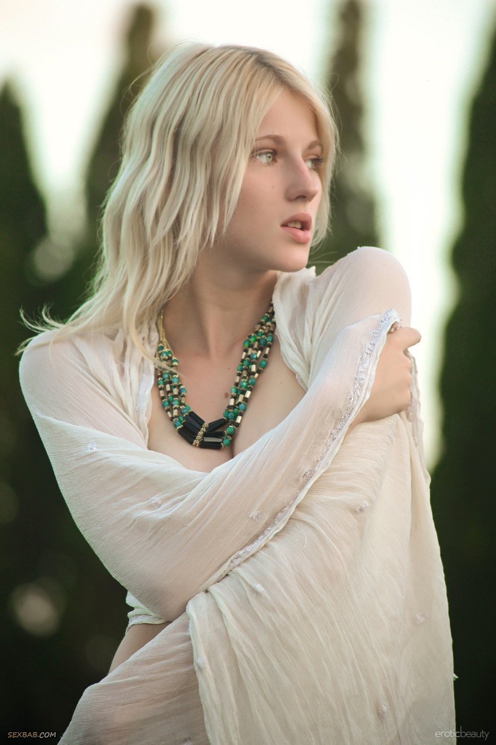 Описание: Игриво прикрываясь легкой тканью, белокурая милашка с голым сексуальным телом эротично прогуливается вечерком по парку. Красуясь перед фотографом в общественном месте и вызывая таким образом лёгкое возбуждение, стройная девушка во всей красе показывала свои упругие сиськи и бритую письку с короткой прической на лобке.