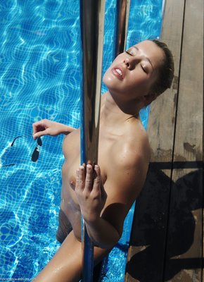 Описание: Прогуливаясь у бассейна и порой забираясь в воду по пояс, стройная и абсолютно голая девушка в одних только солнцезащитных очках получала от процесса массу волнующих эмоций и позволила нам понаблюдать за ней через объектив фотокамеры. Наслаждаясь своей откровенностью, красотка с небольшой грудью особенно тщательно показывала нам свою бритую письку с влекущими половыми губками.