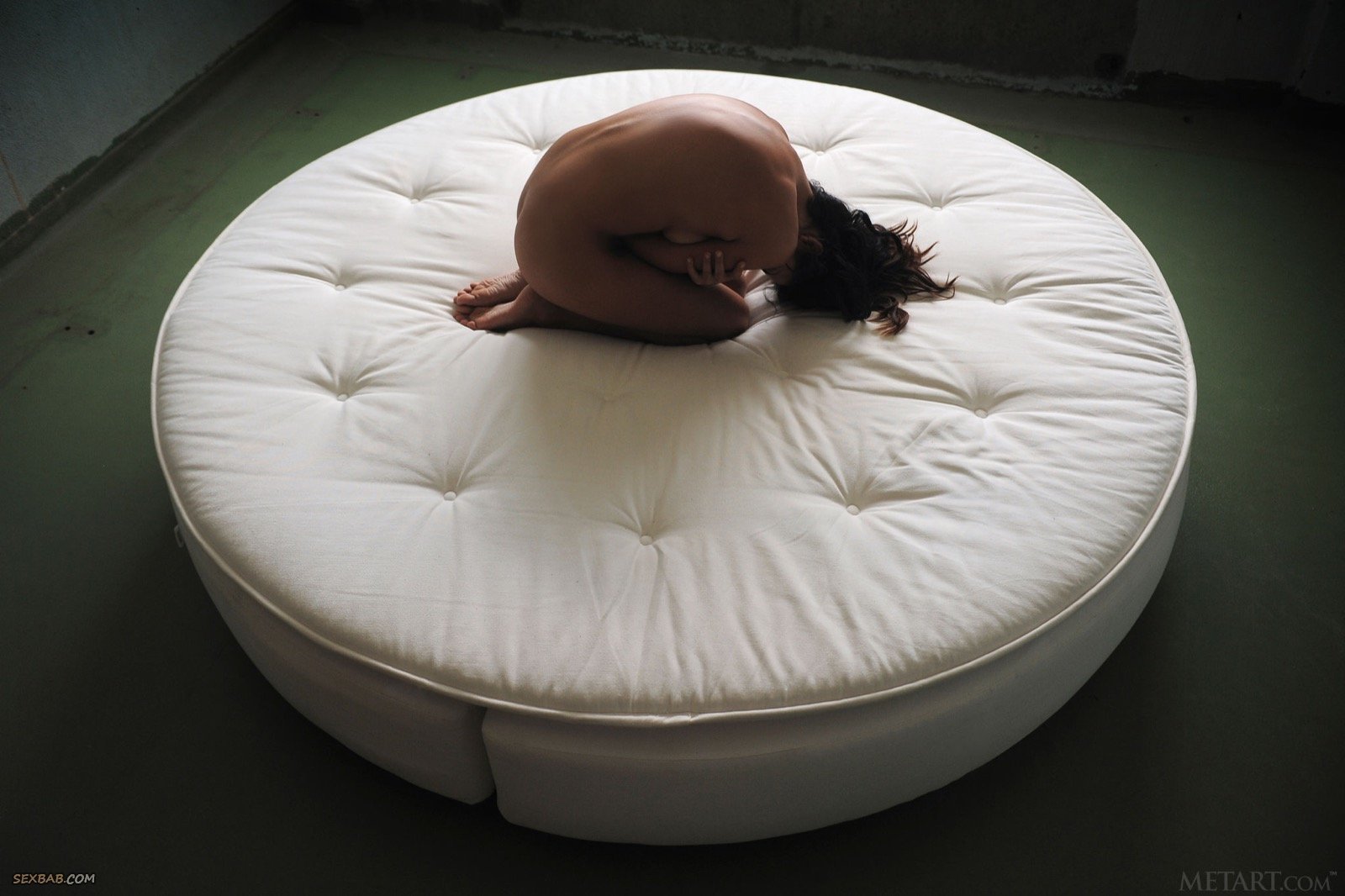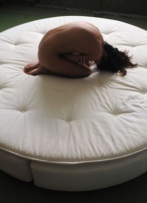 Описание: Лежа на необычной круглой кровати, развратная дама с красивой внешностью, в пеньюаре и черных чулках, грациозно позируя медленно раздевается догола, широко раздвигая ноги. Засветив таким образом возбуждающую, гладко выбритую письку, позже молодая брюнетка показала и маленькие сиськи с попкой.