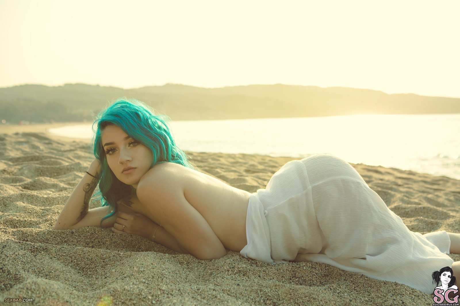 Описание: Прогуливаясь на пляже, неформалка с пирсингом в ноздре и яркими волосами решается на откровенную съёмку в стиле ню и медленно раздевается перед камерой, освобождаясь от лёгкого платья и кружевных трусиков. В поисках лучшего ракурса, красавица кувыркалась на песке, а порой прогибалась раком и оттопыривала упругую попку.