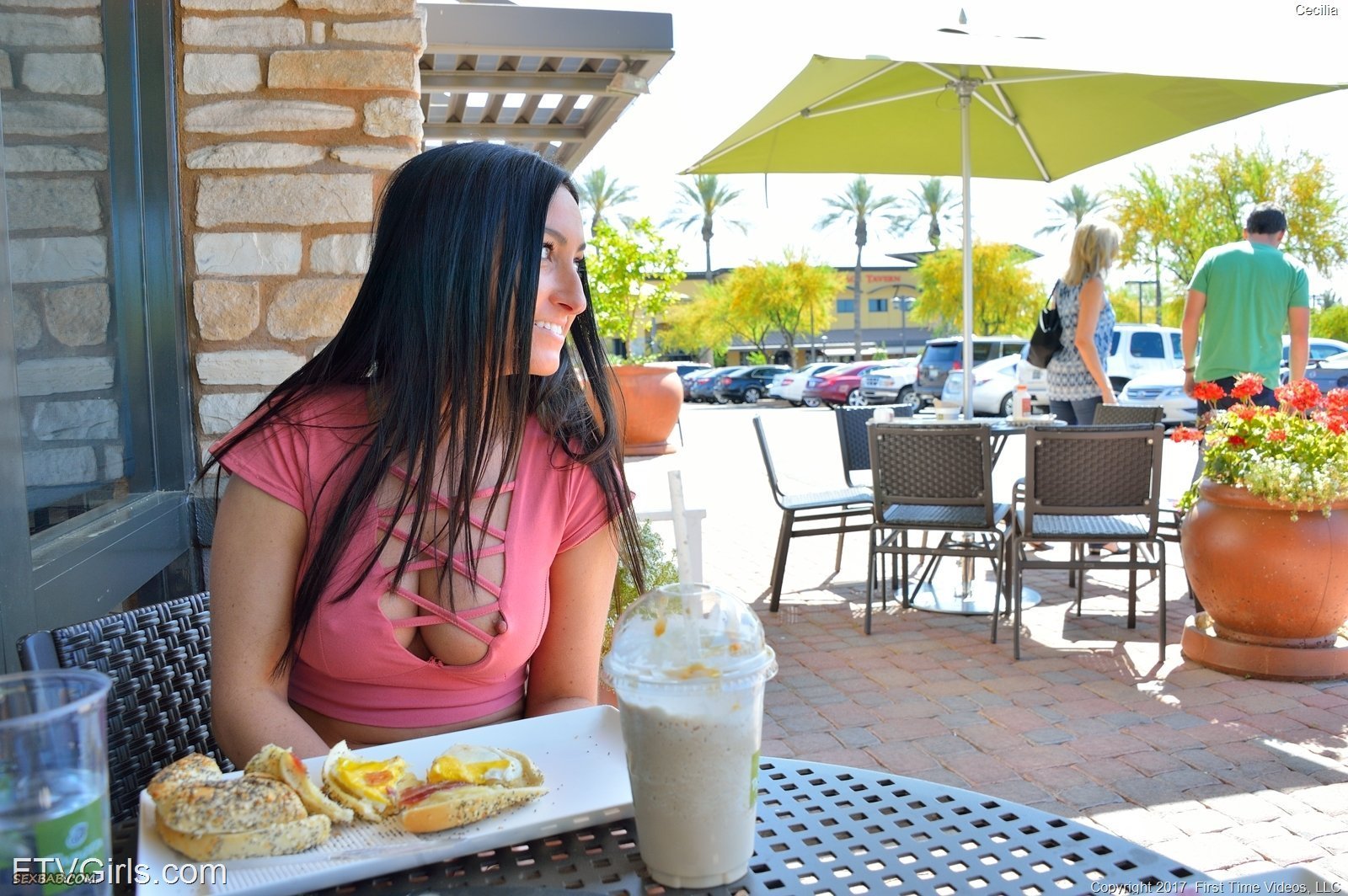 Описание: Устроившись на диванчике, развратная сучка, раздвинув ноги, отодвигает часть джинсовых шортиков и сладострастно играет с большим дилдо окунаясь им в гладко выбритую и уже мокрую письку, а после, модель позирует на публике эротично поедая пищу. В конечном итоге привлекательной крошке так же удалось выставить на показ возбужденные сосочки на натуральность груди.