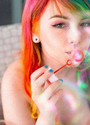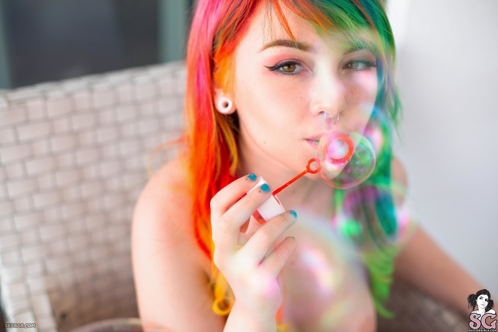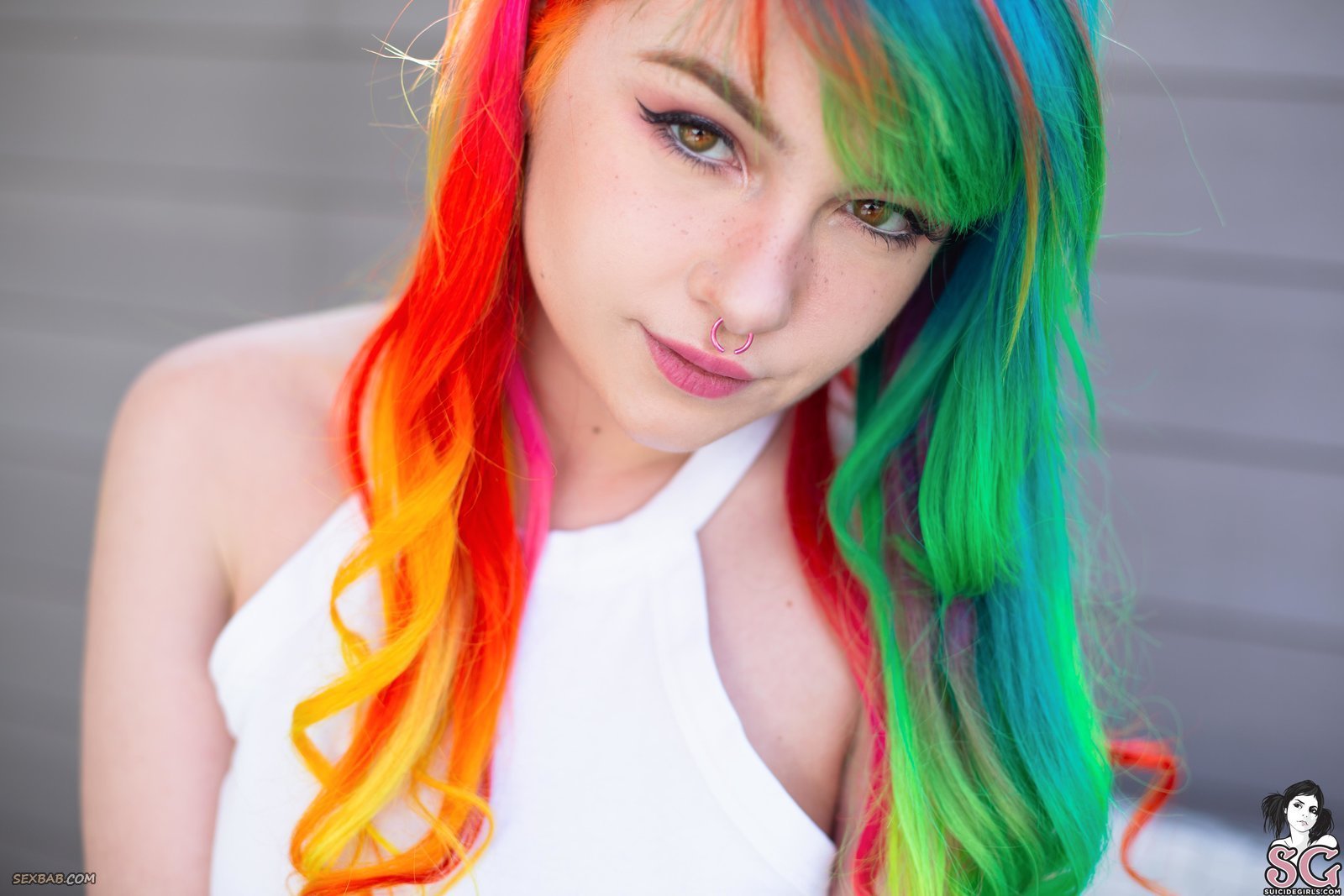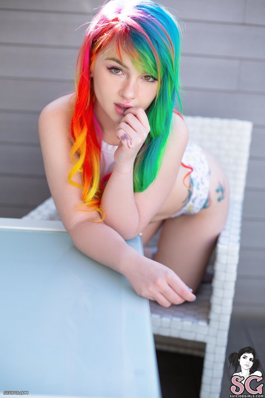 Описание: Меняя позиции на дачном кресле за столом, неформалка с яркими волосами в трусиках и носочках особенно часто прогибается раком и делает акцент на большой упругой жопе. В процессе молоденькая девушка умудрялась игриво строит глазки и возбуждающе приоткрывать ротик.