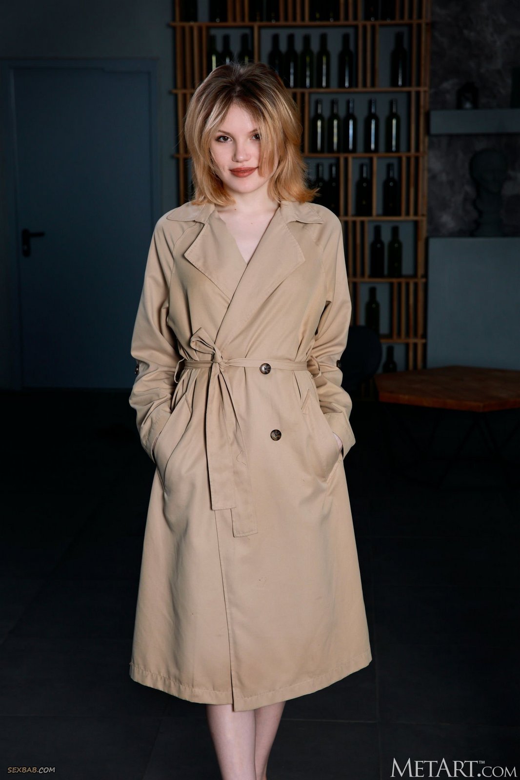 Описание: Дерзко распахнув перед камерами пальто и оставшись с одном лишь кружевном белье, молодая худышка кокетливо стянула с маленькой упругой попки трусы и, развалившись на диване в позе с широко раздвинутыми ногами, во всей красе оголила свою сочную розовую киску со сладкой влажной дыркой.