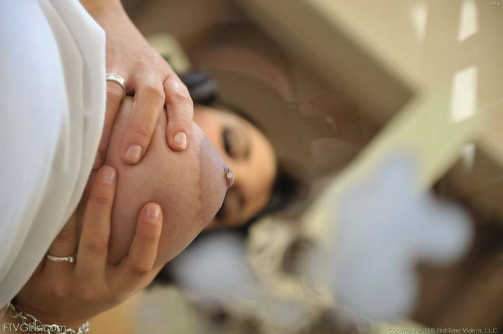 Латинка Сильвия доет свои необычные сиськи с молоком
